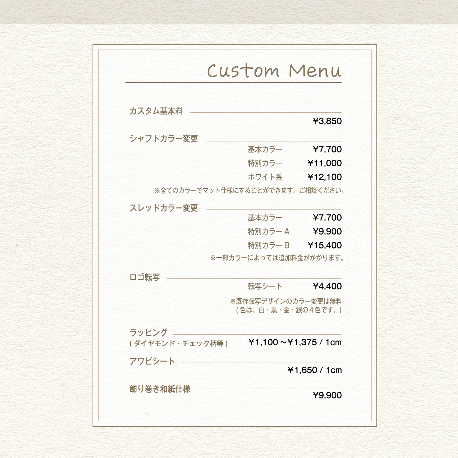 | シャフトカラー変更 基本カラー | ¥7,700 |